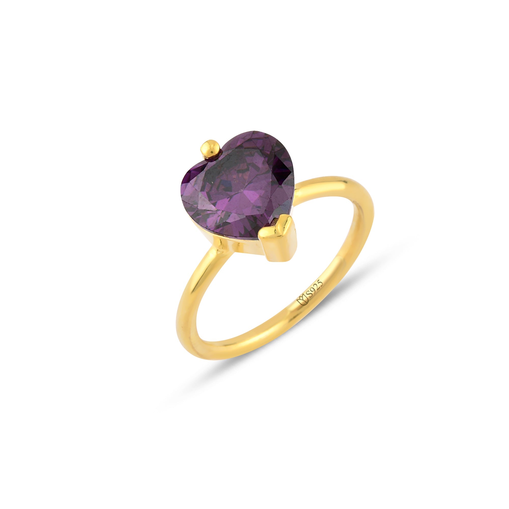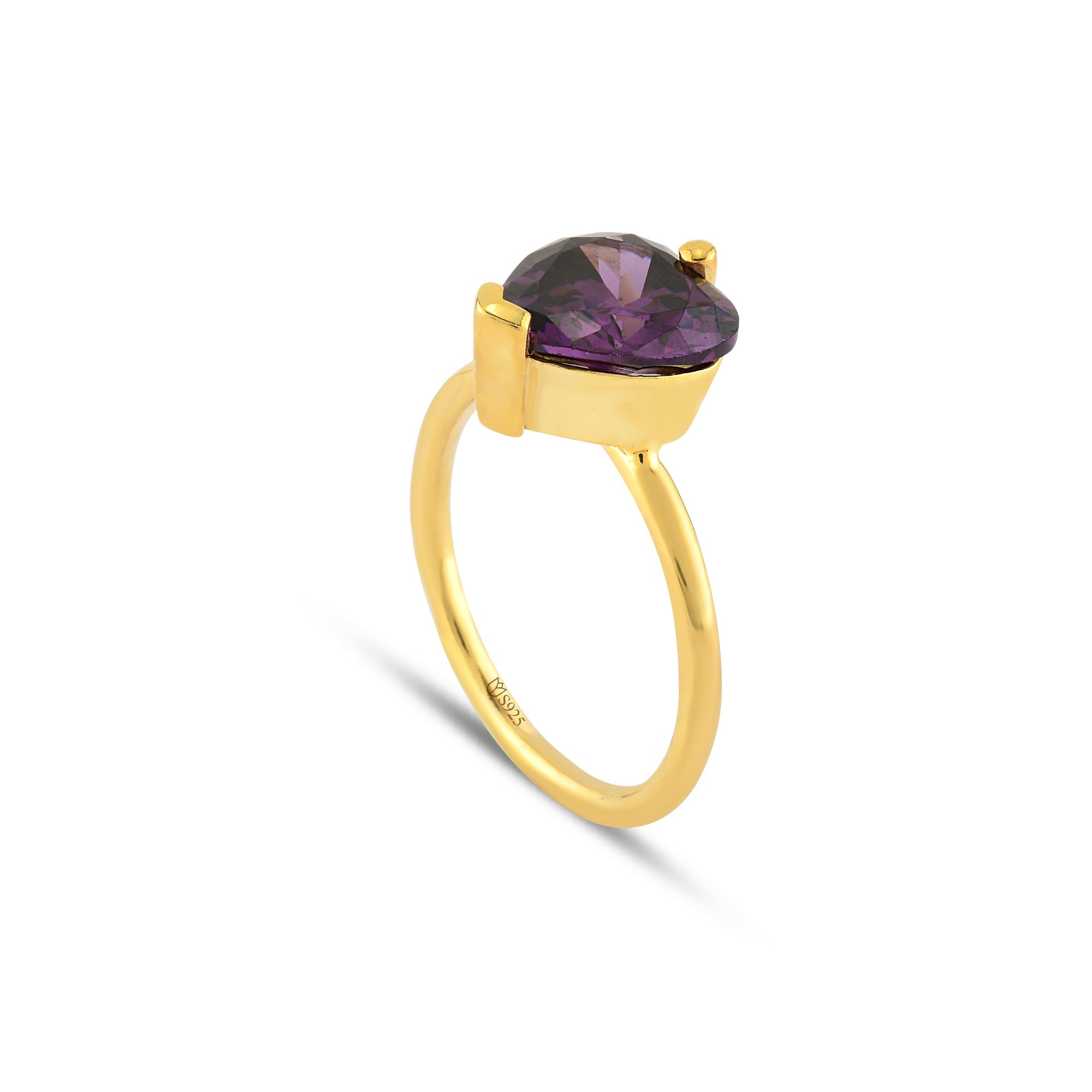 Amethyst Zirconia Love Cut Solitaire Ring