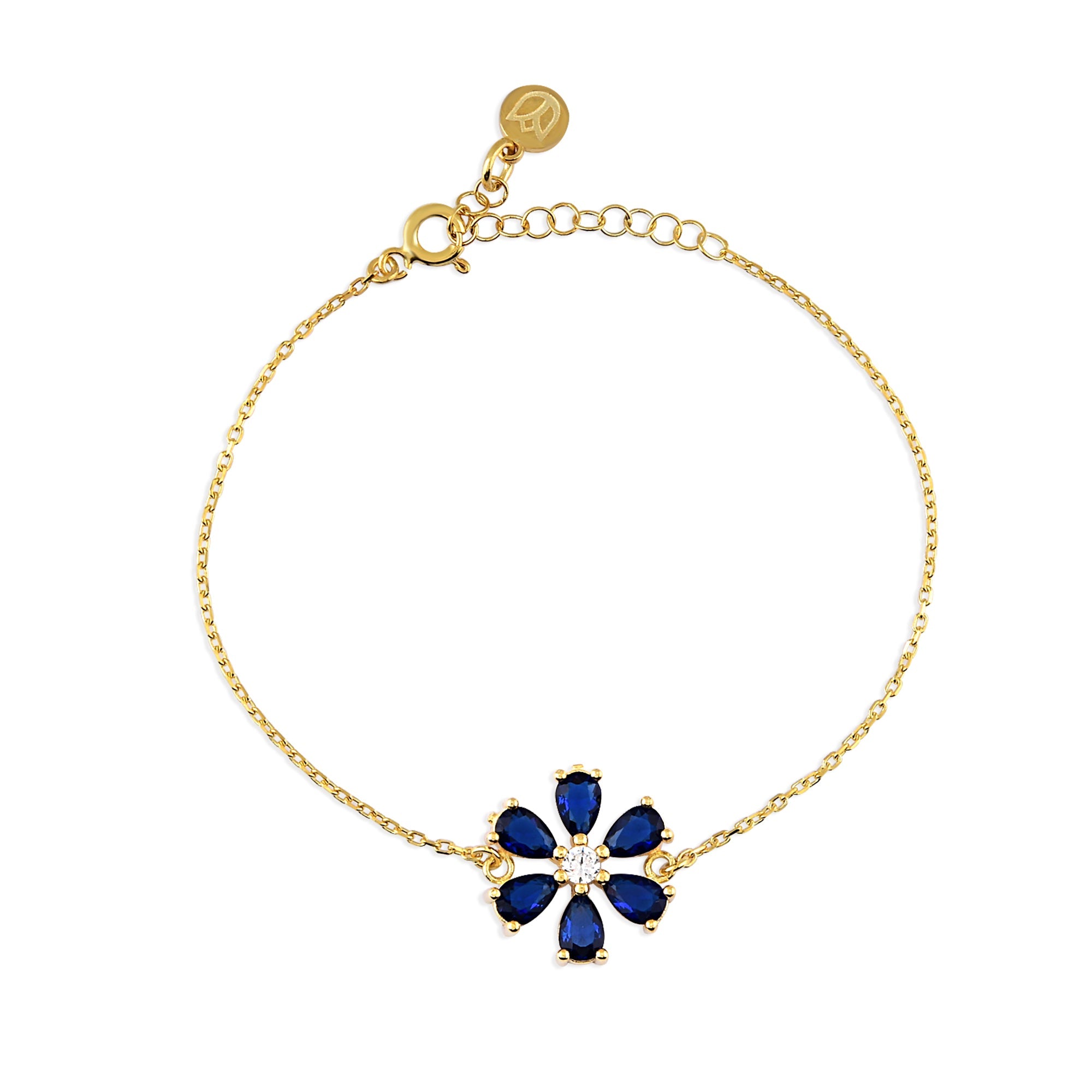 Elevate your style with our Sapphire Zirconia Drop Cut Daisy Bracelet. This stunning piece features sparkling zirconia stones set in a beautiful daisy design, perfect for adding a touch of elegance to any outfit. Crafted from 925 silver sterling and finished with luxurious gold vermeil, this bracelet is not only a timeless accessory but also a wonderful complement to our matching earrings. Shine bright with this exquisite addition to your jewelry collection.
