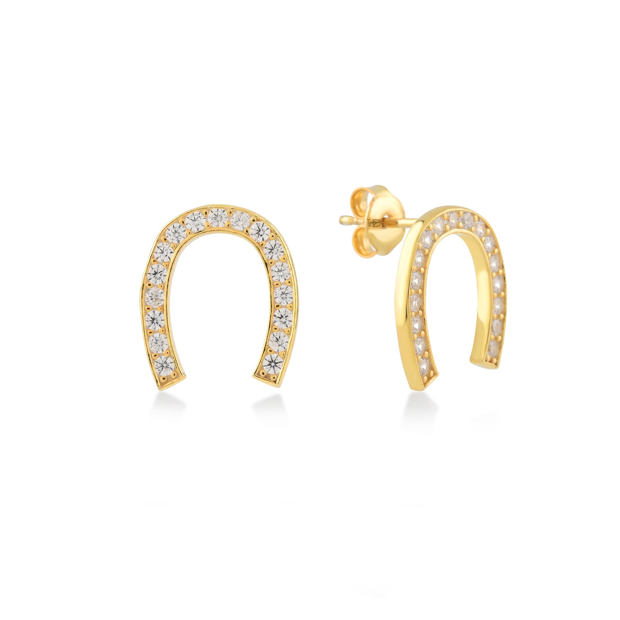 Elevate your jewelry collection with our stunning Pure Zirconia Horseshoe Earrings. Crafted from high-quality 925 Silver Sterling and adorned with dazzling zirconia, these earrings exude elegance and charm. The luxurious gold vermeil finish adds a touch of sophistication, making them perfect for any occasion. Whether you're dressing up for a special event or adding a chic accent to your everyday look, these earrings are a must-have accessory. Shine bright and bring good luck with every wear!