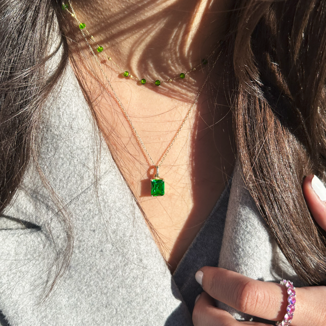 Elevate your jewelry collection with our Emerald Zirconia Baguette Cut Pendant Necklace. This stunning piece features a beautifully crafted baguette-cut emerald zirconia, radiating elegance and sophistication. Perfect for any occasion, whether it's a night out or a special celebration, this necklace adds a touch of glamour to any outfit. Crafted with high-quality materials, it promises to be both durable and dazzling. Treat yourself or surprise a loved one with this timeless treasure that embodies style and grace.