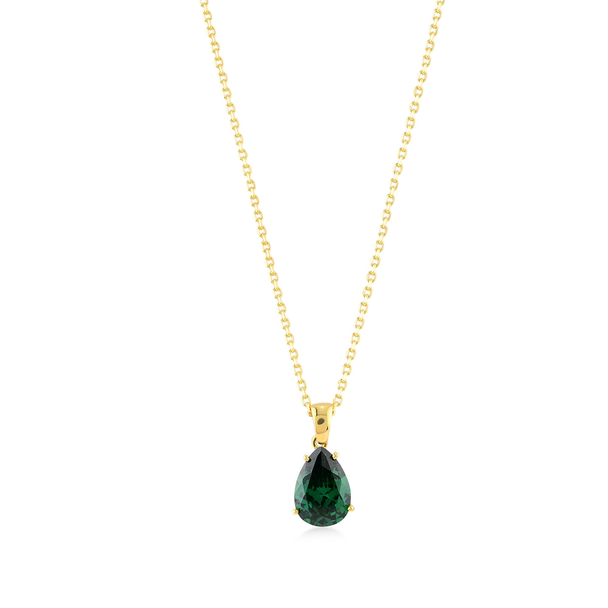 Emerald Zirconia Drop Cut Pendant Necklace