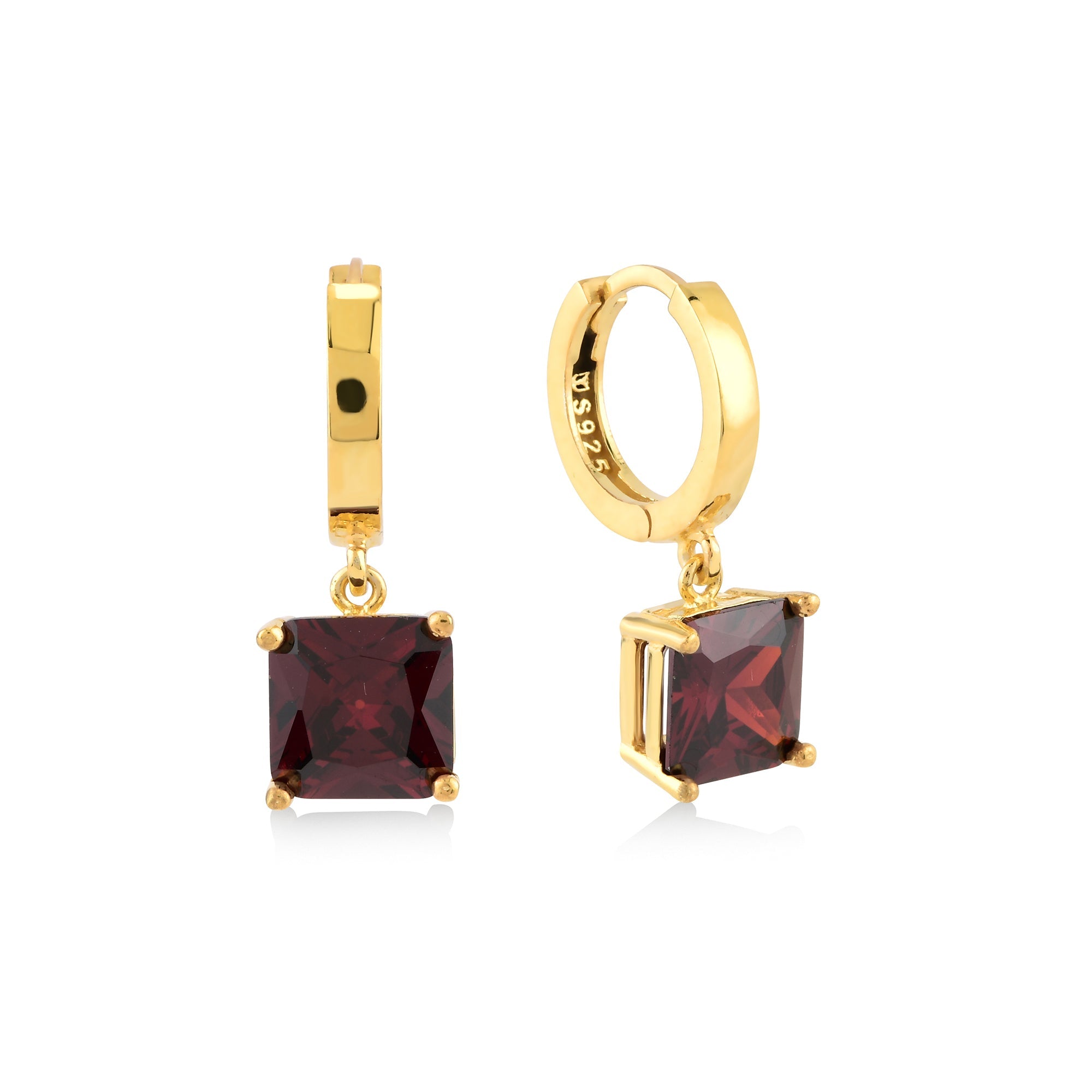 Elevate your style with our stunning Garnet Zirconia Square Cut Dangle Earrings. Crafted from high-quality 925 Silver Sterling, these earrings feature exquisite zirconia stones that shimmer with every movement. The elegant gold vermeil finish adds a touch of luxury, making them perfect for both everyday wear and special occasions. Make a statement with these exquisite earrings that combine beauty and sophistication.