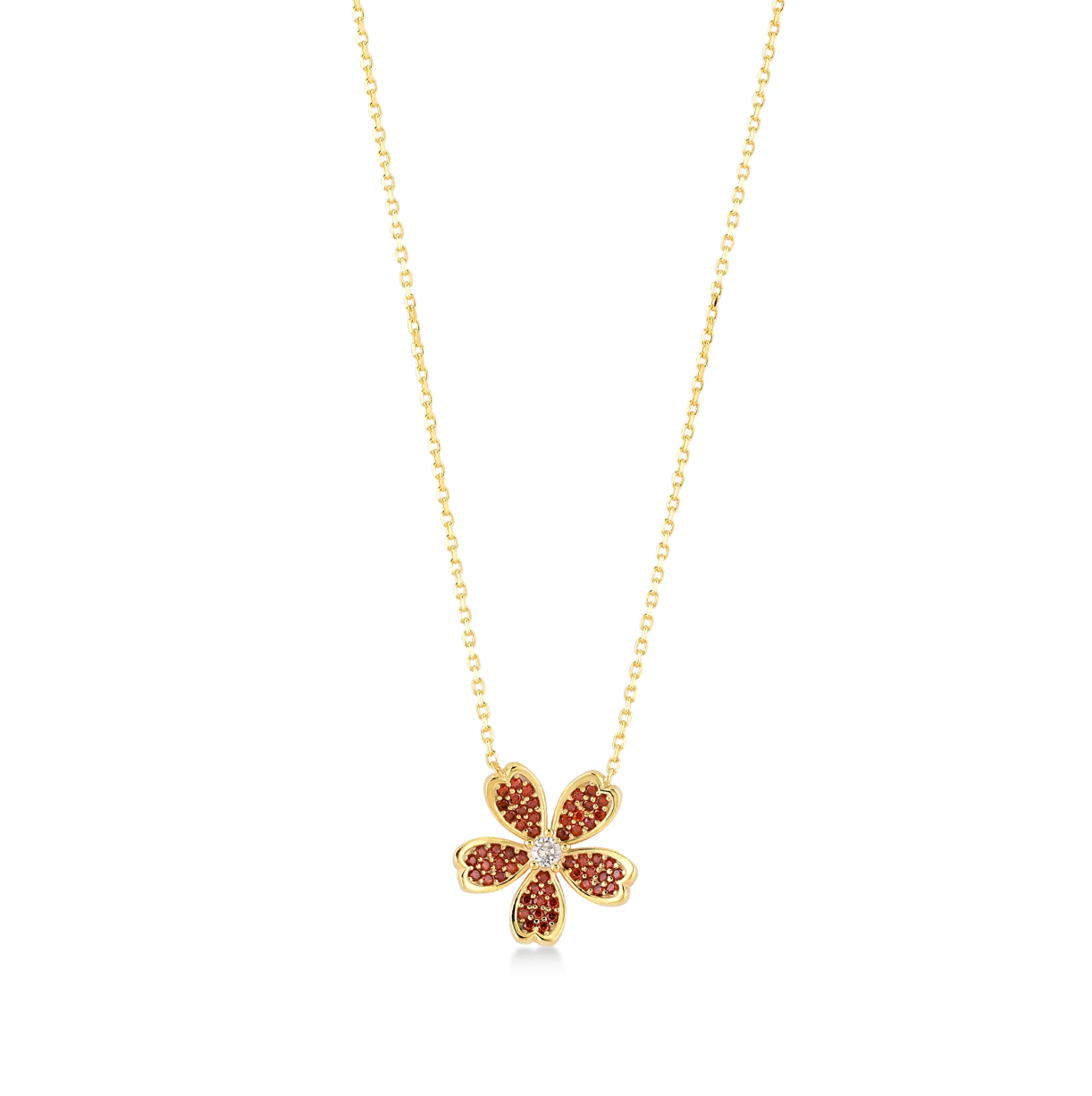 Elevate your jewelry collection with our exquisite Garnet Zirconia Daisy Necklace. This stunning piece features vibrant garnet zirconia stones set in a delicate daisy design, adding a touch of elegance to any outfit. Crafted from high-quality 925 silver sterling, this necklace ensures durability and shine, while the luxurious gold vermeil finish gives it a sophisticated flair. Perfect for any occasion, this necklace is a must-have accessory that seamlessly blends beauty and elegance.