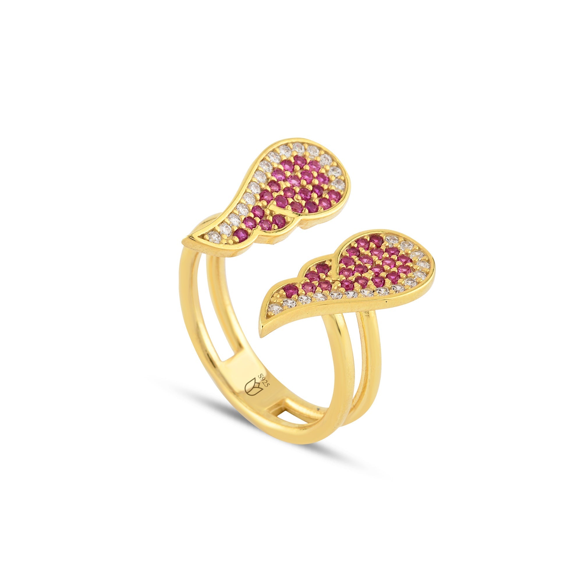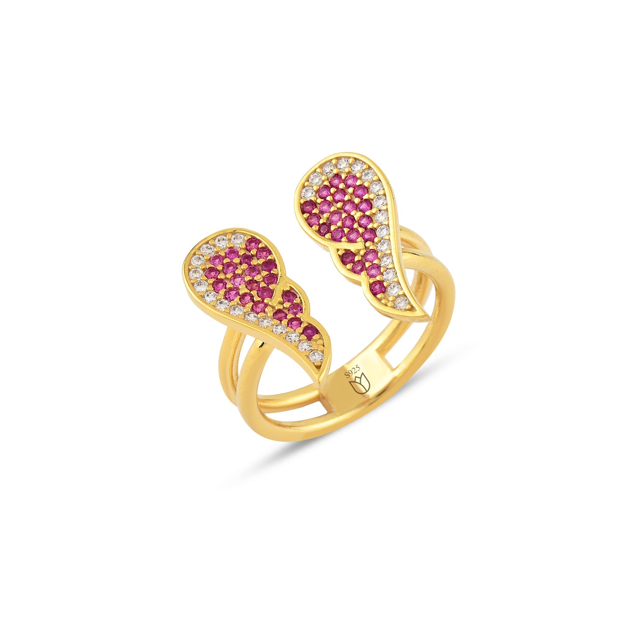 Introducing the Ruby Zirconia Angel Harmony Ring, a stunning piece that combines elegance and spiritual harmony. Crafted from premium 925 Silver Sterling, this ring features a radiant ruby zirconia centerpiece that sparkles beautifully. Its exquisite gold vermeil finish adds a touch of luxury, making it perfect for any occasion. Elevate your jewelry collection with this enchanting ring that symbolizes love and protection.