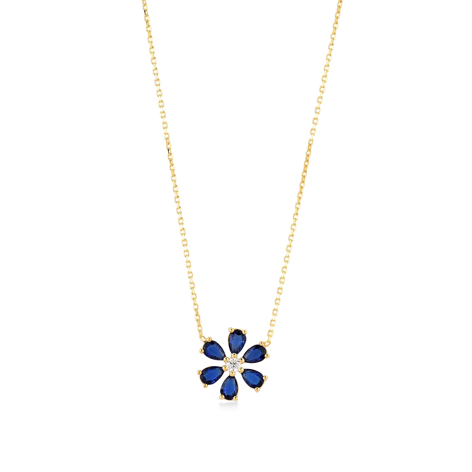 Sapphire Zirconia Drop Cut Daisy Necklace