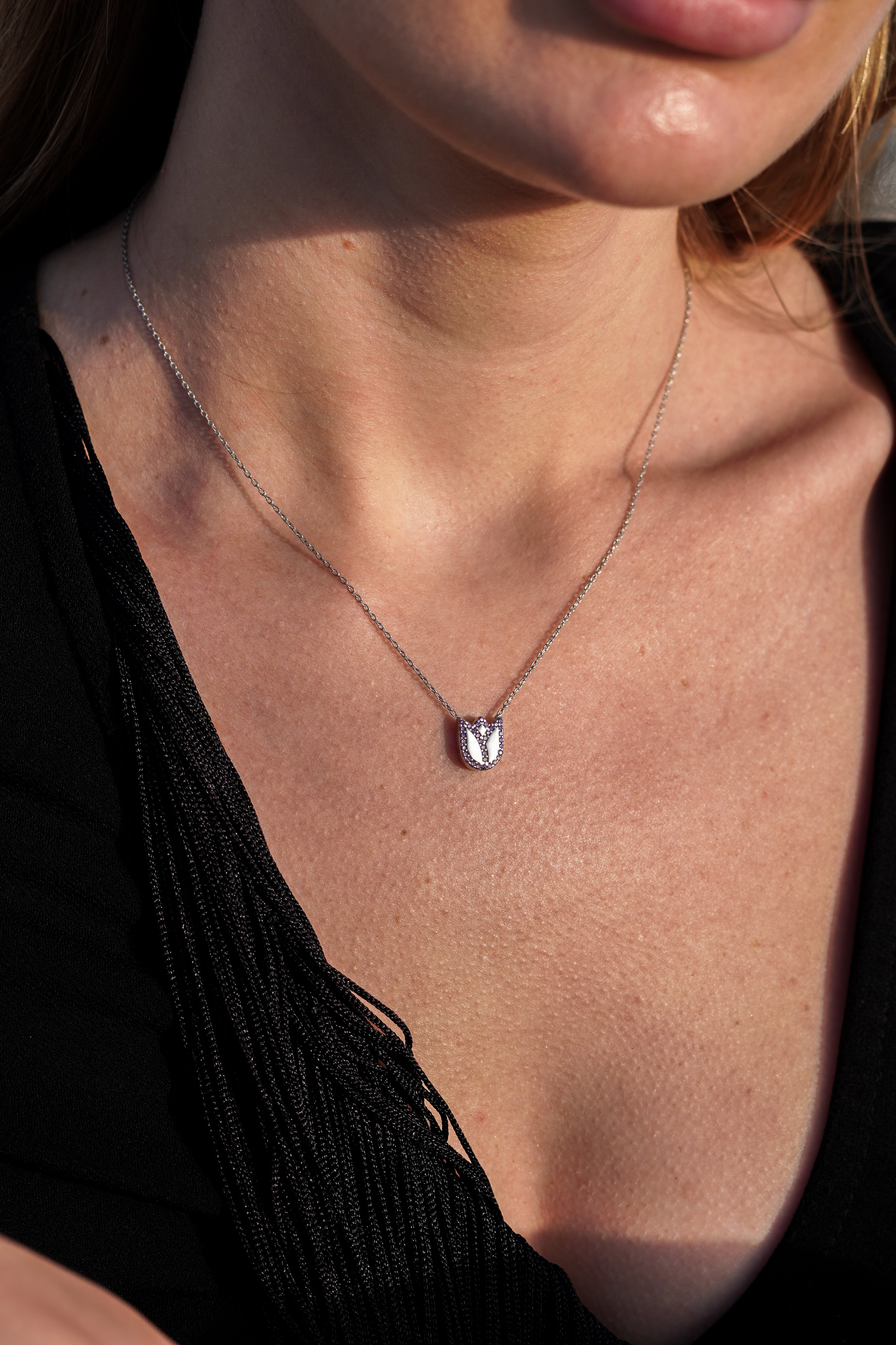 Introducing the stunning Lady Tulip Necklace, a true embodiment of elegance and sophistication. Crafted from high-quality 925 Silver Sterling, this exquisite piece showcases an iconic design that pays homage to the delicate beauty of tulips. Each necklace is a unique masterpiece, reflecting both modern artistry and timeless charm, making it a perfect addition to your jewelry collection or a thoughtful gift for someone special.