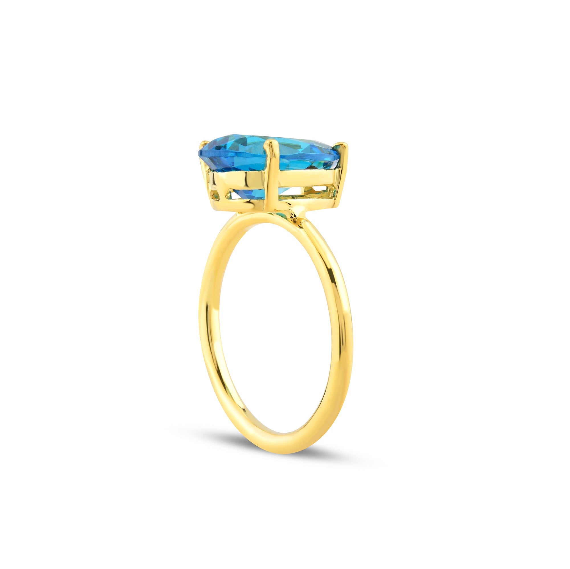 Aquamarine Zirconia Drop Cut Solitaire Ring