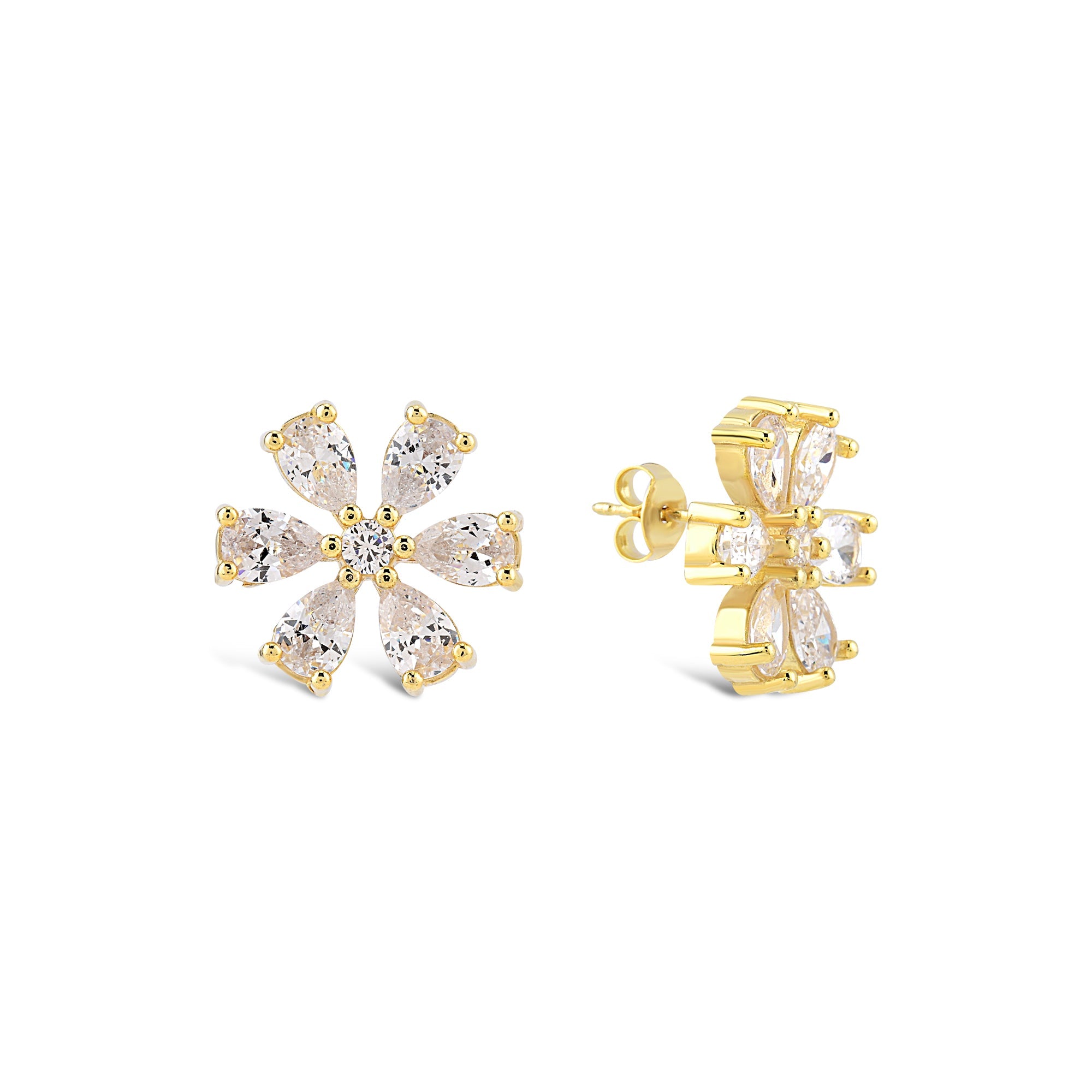 Pure Zirconia Drop Cut Daisy Stud Earrings