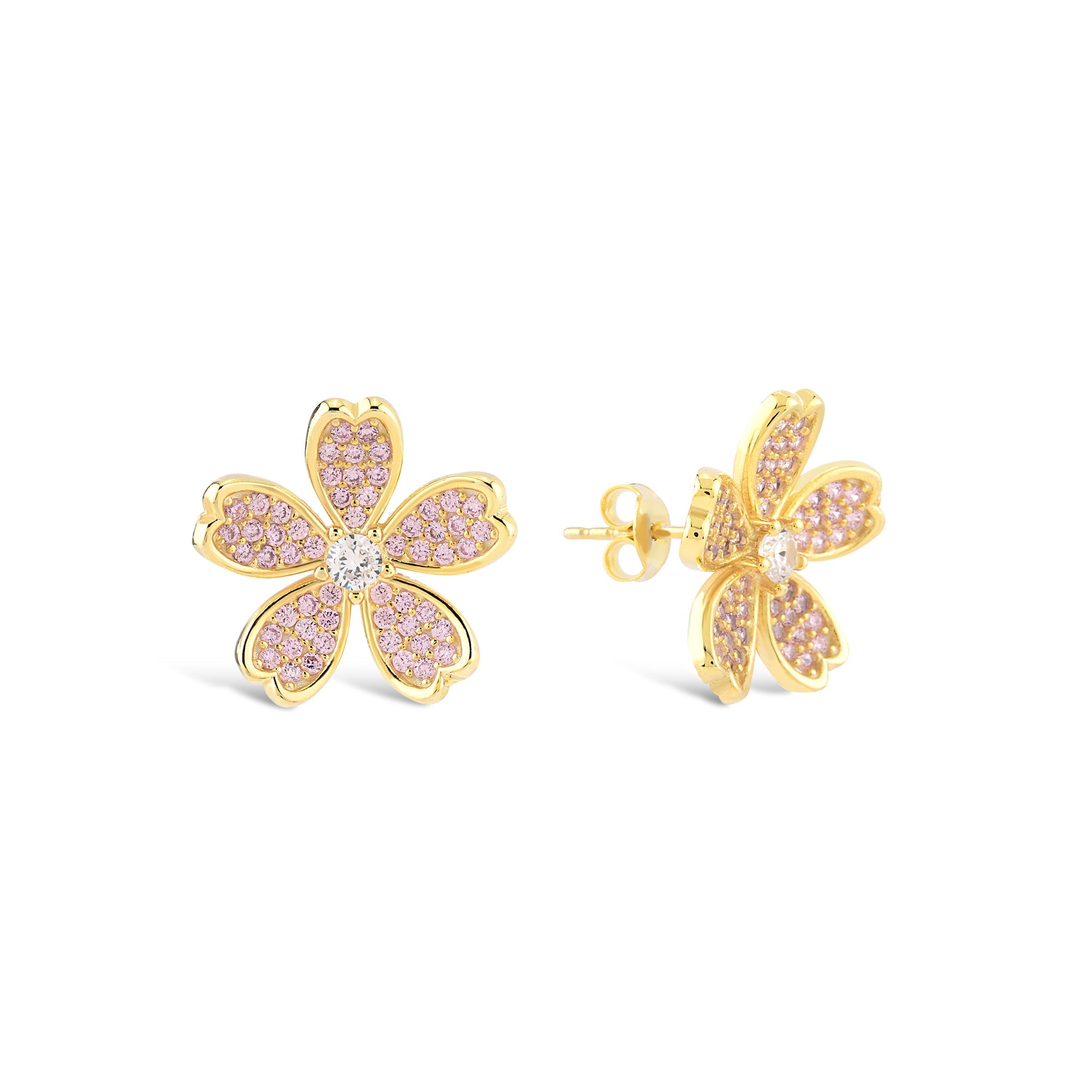 Pink Zirconia Daisy Stud Earrings