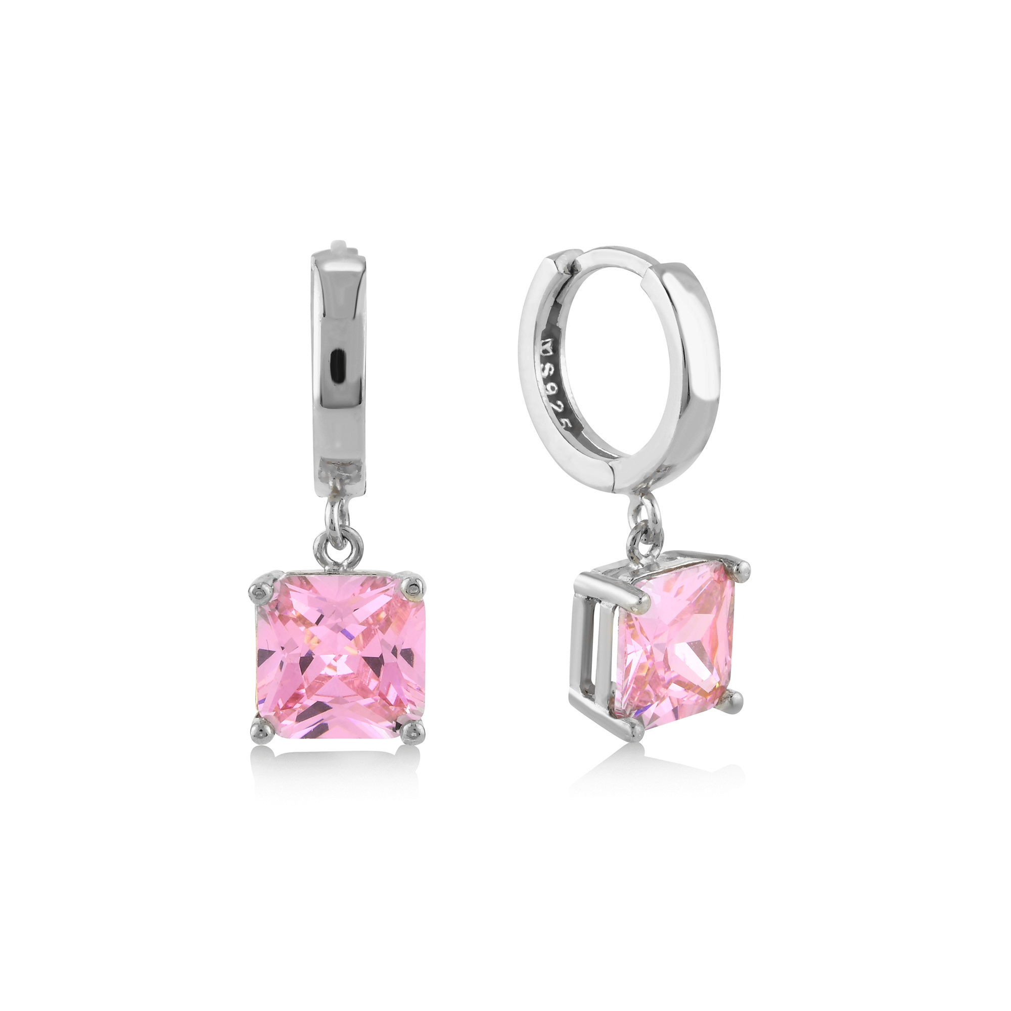 Pink Zirconia Square Cut Dangle Earrings