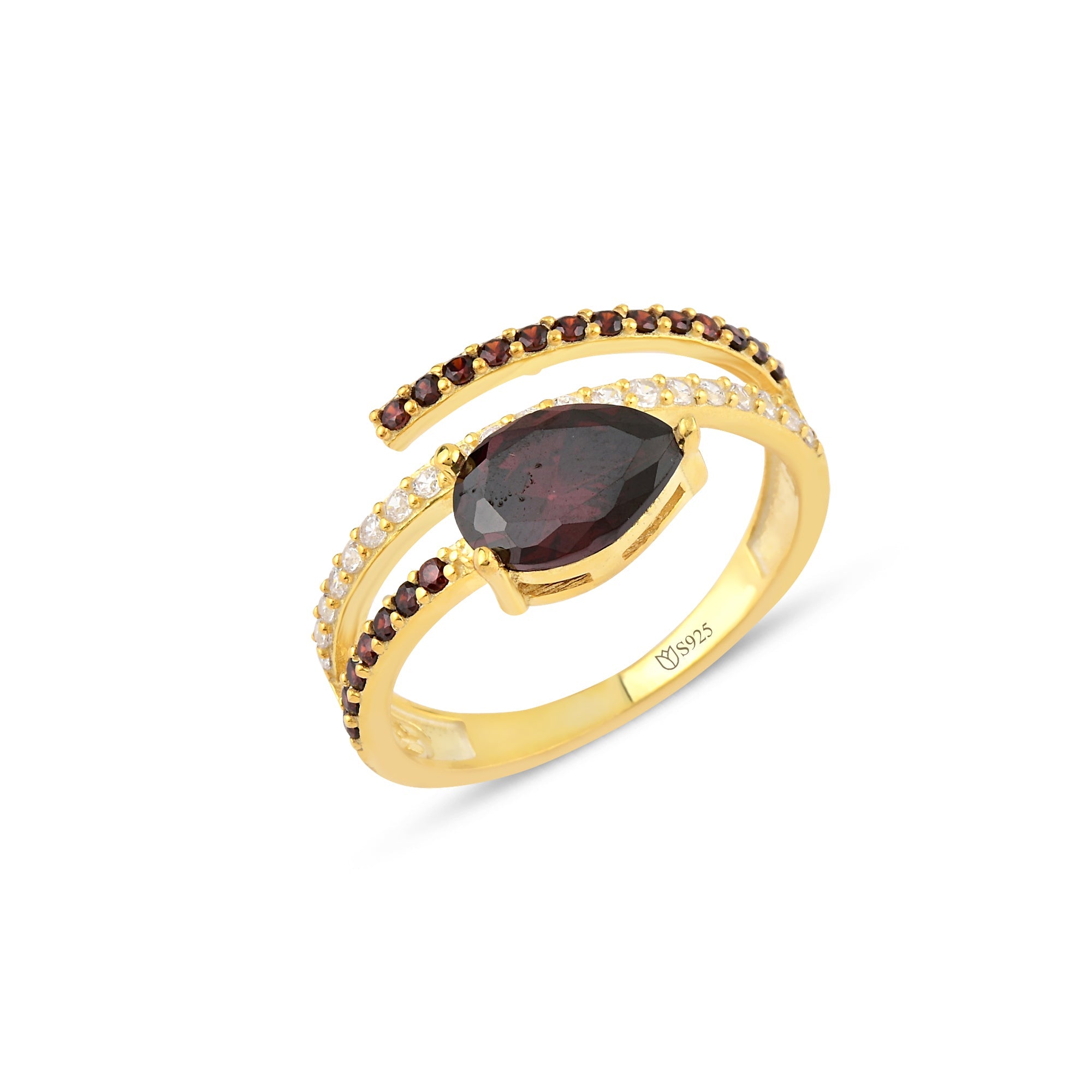 Garnet Zirconia Damla Taşlı Yüzük | 24 Ayar Altın Kaplamalı 925 Ayar Gümüş