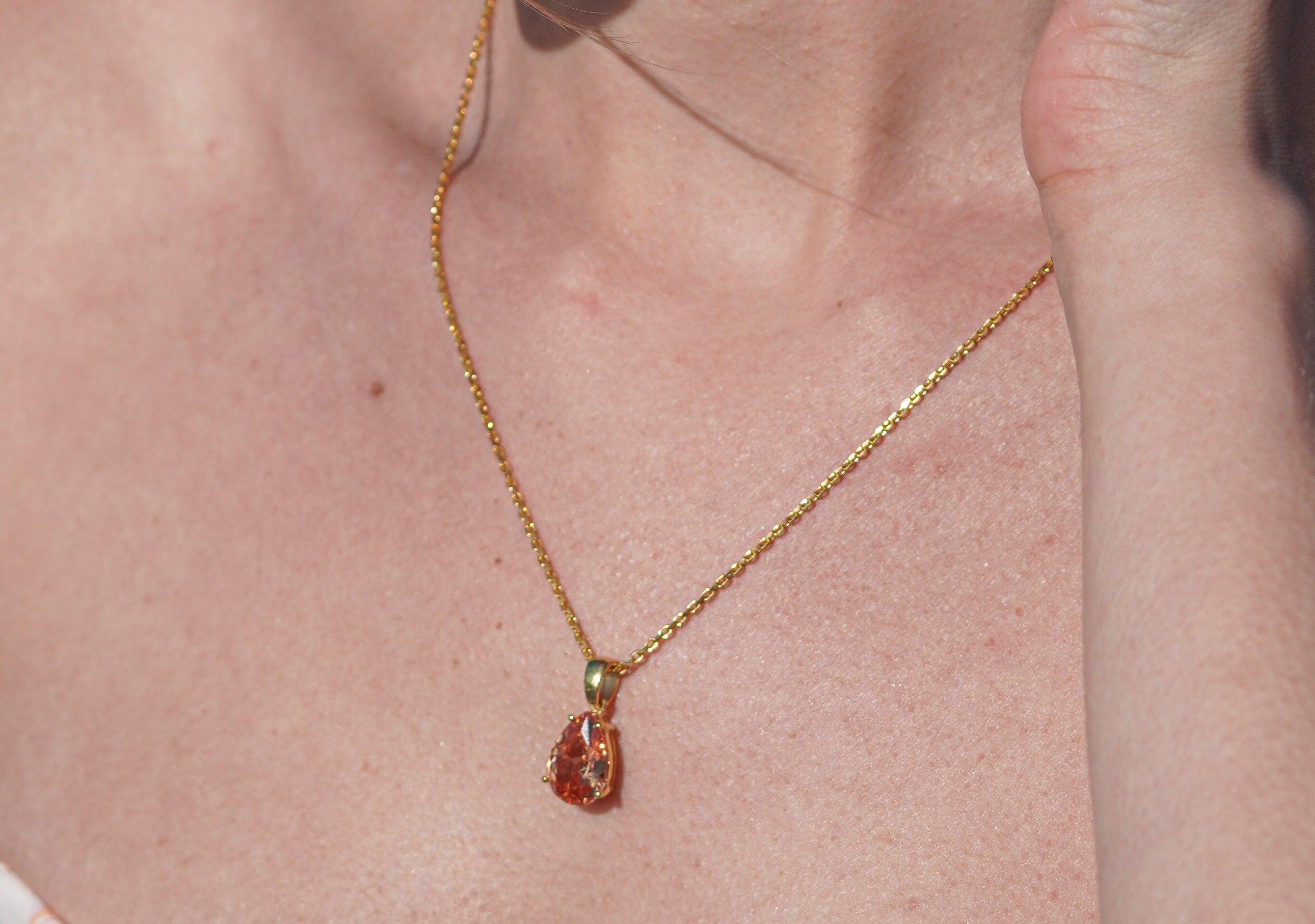 Elevate your jewelry collection with our Champagne Zirconia Drop Cut Pendant Necklace. Crafted with exquisite 925 Silver Sterling, this stunning necklace features a sparkling zirconia stone, radiating elegance and sophistication. The luxurious gold vermeil finish adds a touch of opulence, making it perfect for any occasion. Whether you're dressing up for a night out or adding a bit of glam to your everyday look, this pendant necklace is a must-have accessory that shines brightly.