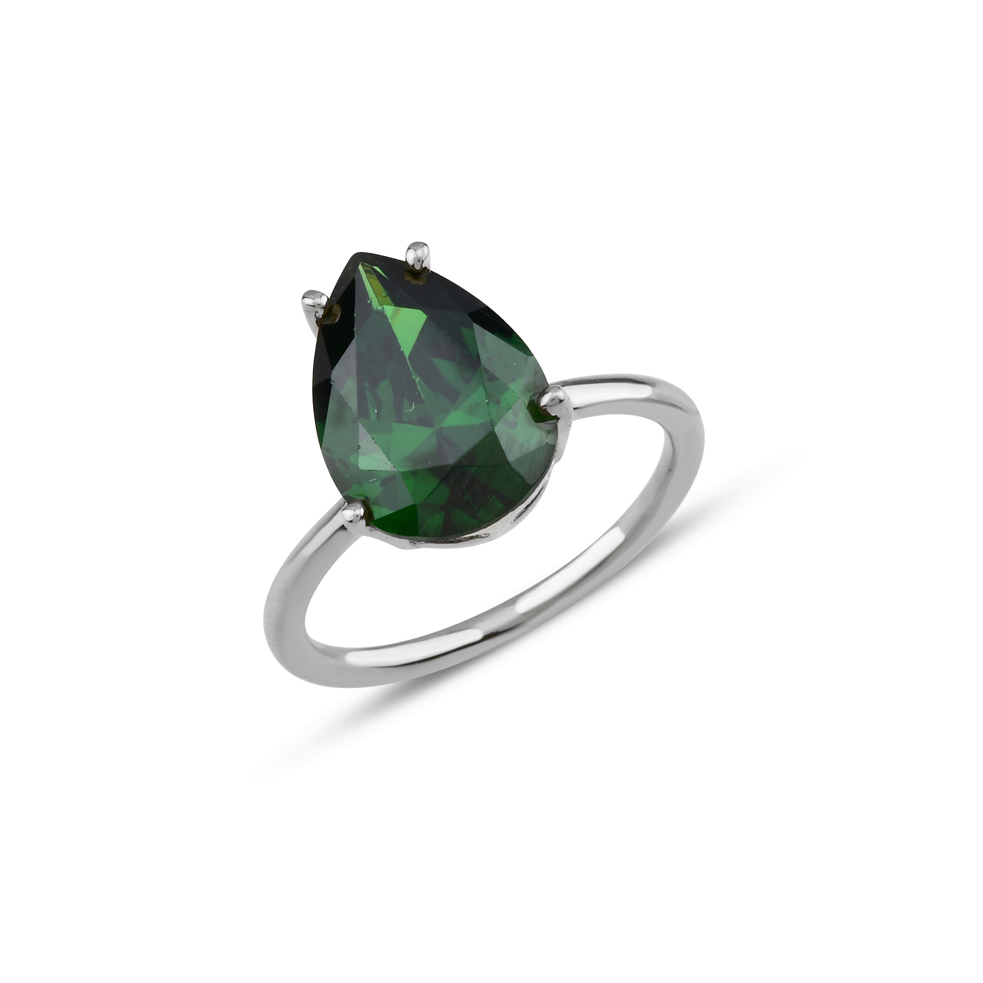 Emerald Zirconia Drop Cut Solitaire Ring