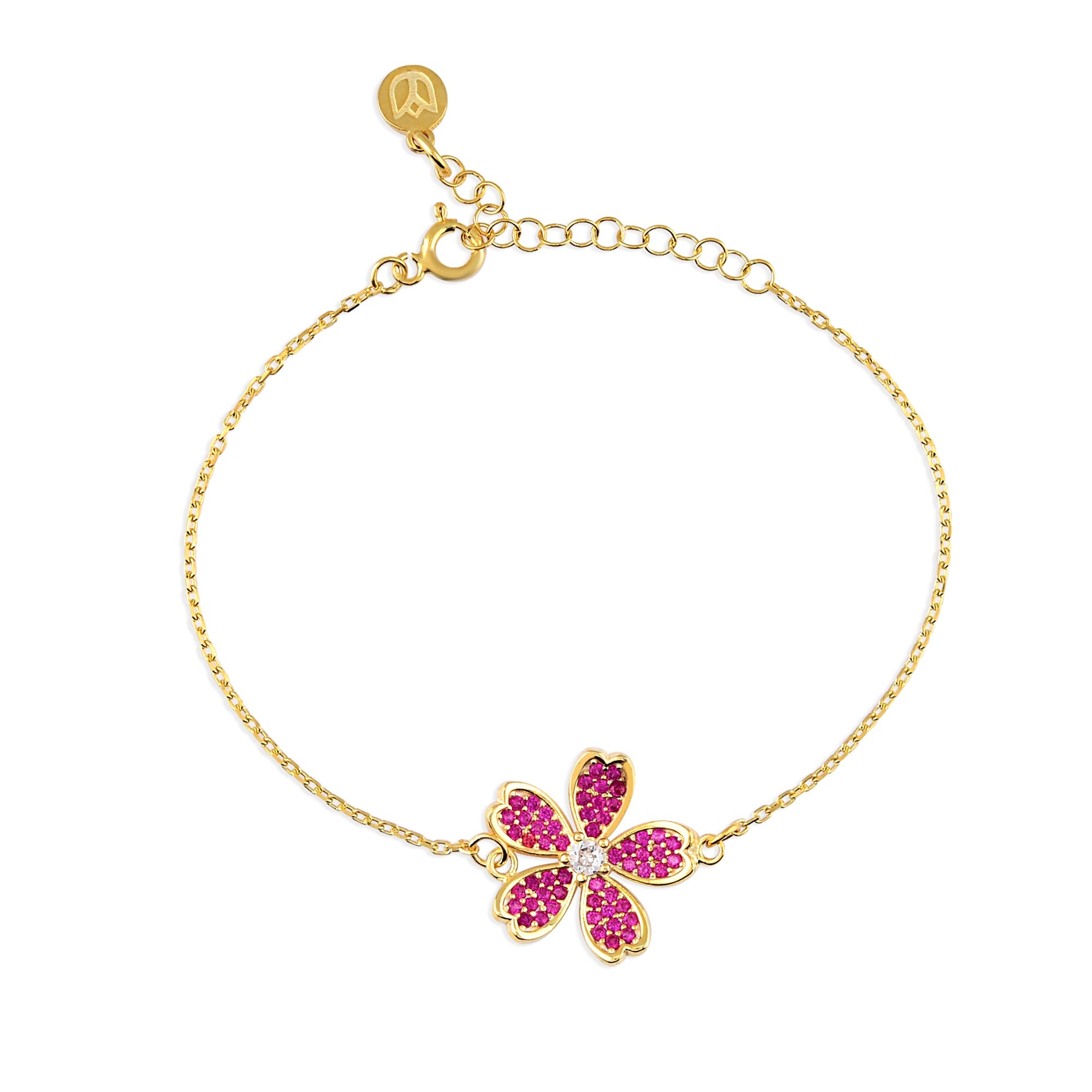 Elevate your jewelry collection with our Ruby Zirconia Daisy Bracelet. This stunning piece features exquisite zirconia stones meticulously set in a delicate daisy design, crafted to perfection from high-quality 925 sterling silver. The bracelet is beautifully enhanced with a luxurious gold vermeil finish, adding a touch of elegance to any outfit. Pair it with our matching earrings for a complete look that shines with sophistication and charm. A perfect accessory for any occasion!