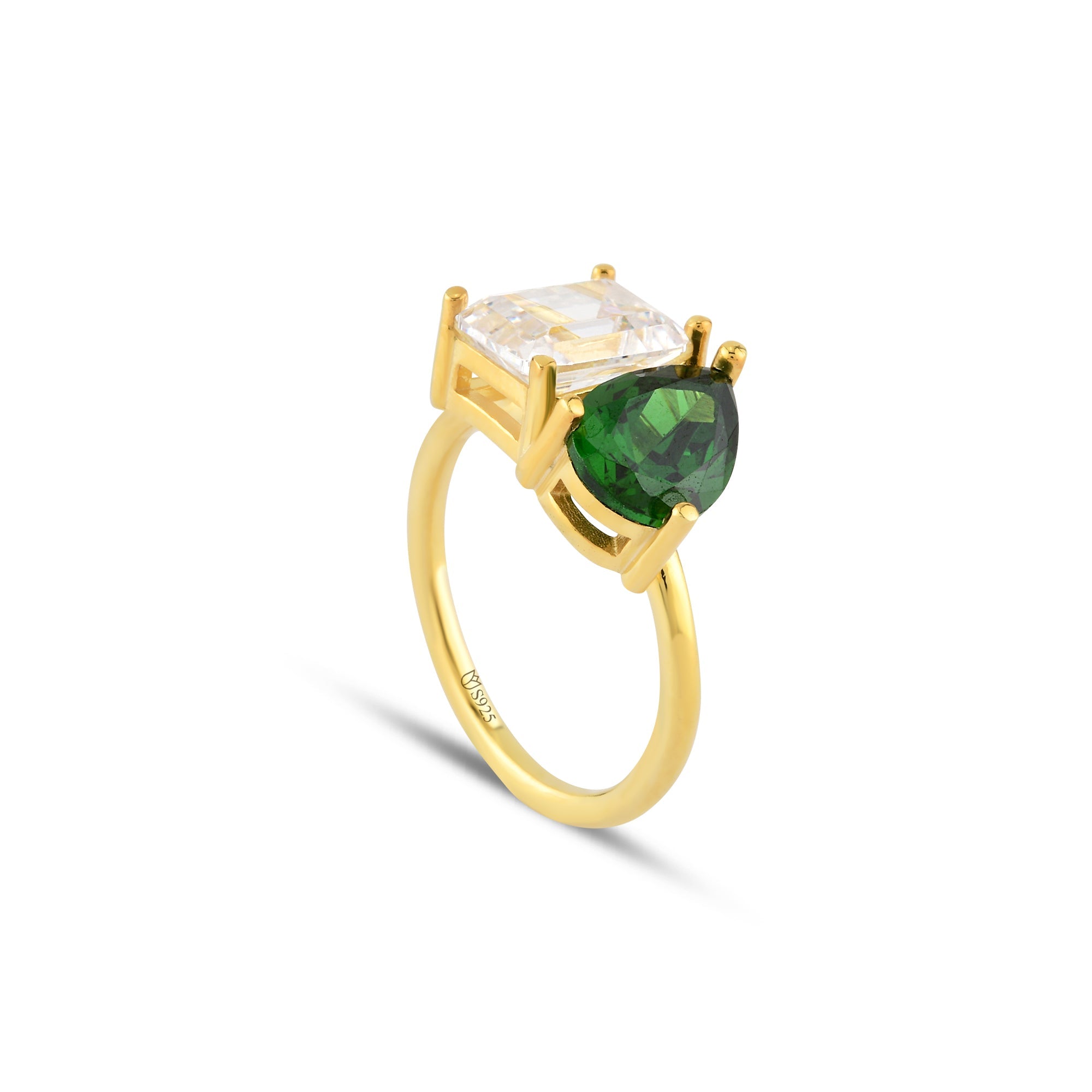 Discover the elegance of our Emerald Zirconia Harmonic Fusion Ring, a stunning piece crafted from 925 silver sterling and adorned with luminous zirconia stones. This exquisite ring features a vibrant emerald zirconia at its centerpiece, beautifully complemented by intricate gold vermeil accents. Perfect for elevating any ensemble, this ring pairs wonderfully with our matching earrings, making it an ideal choice for both everyday wear and special occasions. Embrace timeless sophistication with this captivating fusion of color and shine.