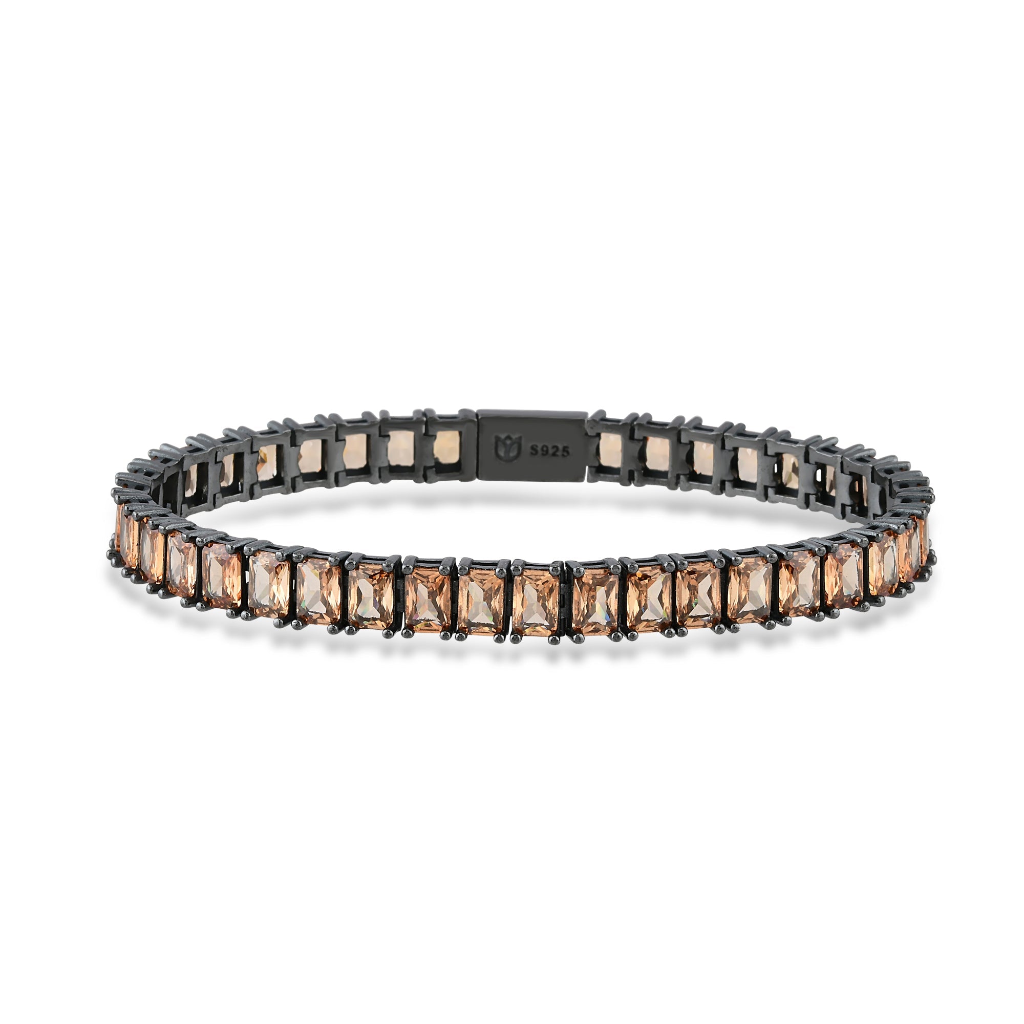 Champagne Zirconia Black Rhodium Oval Cut Tennis Bracelet