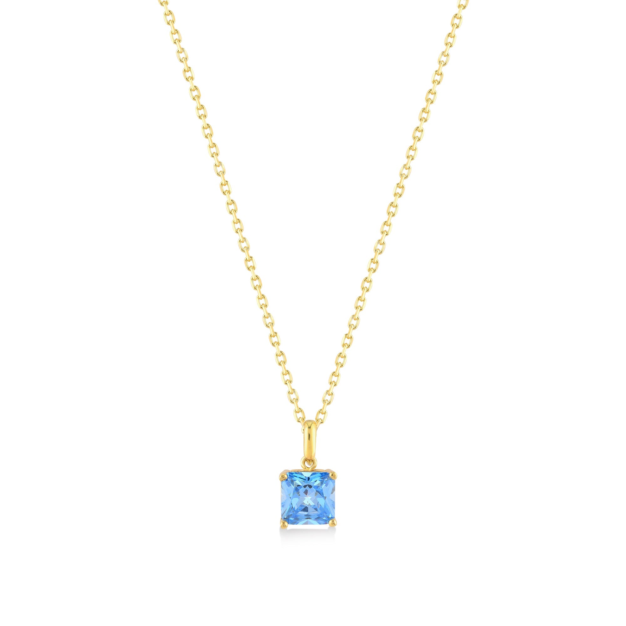 Aquamarine Zirconia Square Cut Pendant Necklace