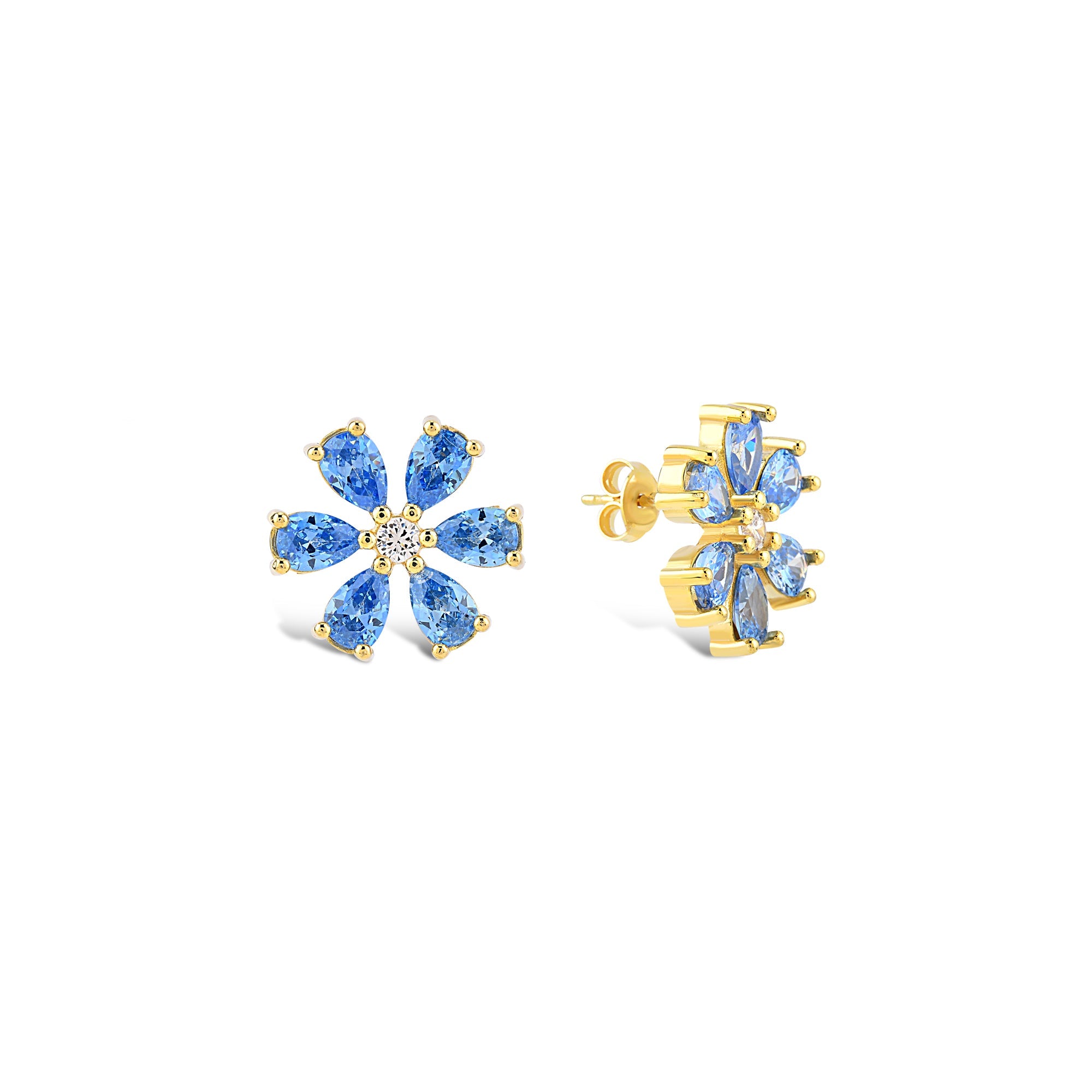 Aquamarine Zirconia Drop Cut Daisy Stud Earrings