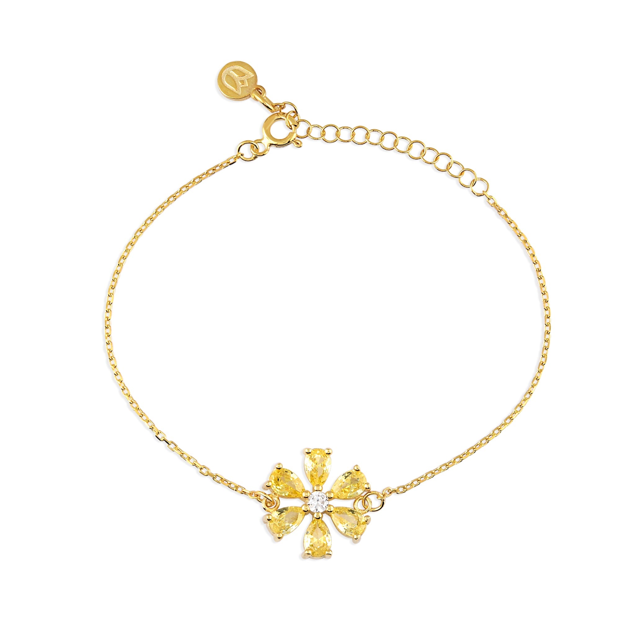 Yellow Zirconia Drop Cut Daisy Bracelet