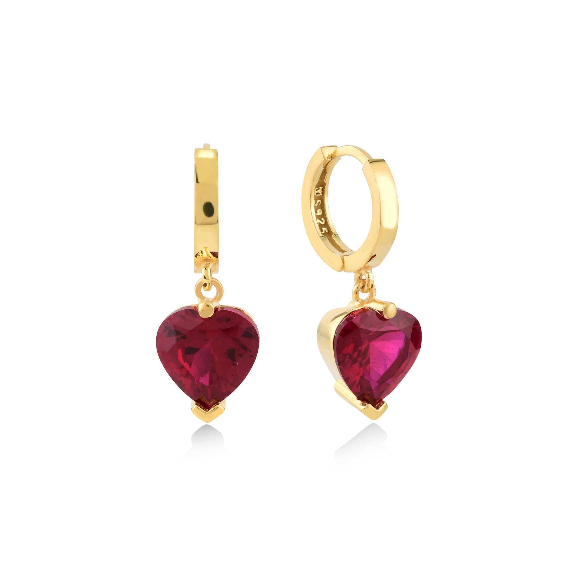 Ruby Zirconia Love Cut Dangle Earrings